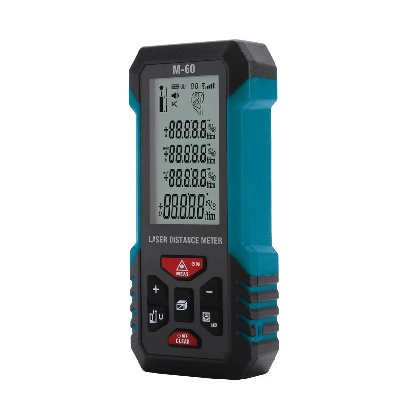 - Μετρητής αποστάσεων 6 λειτουργιών: Συνεχής μέτρηση (m) / Μέτρηση εμβαδού (m²) / Μέτρηση όγκου (m³) / Μέτρηση μήκους απέναντη πευράς (Πυθαγόρειο 2 σημείων) (m) / Μέτρηση μήκους απέναντη πευράς (Διπλό Τρίγωνο – Πυθαγόρειο 3 σημείων) (m) / Μέτρηση μήκους άνω πευράς (Διπλό Τρίγωνο – Πυθαγόρειο 3 σημείων) (m).