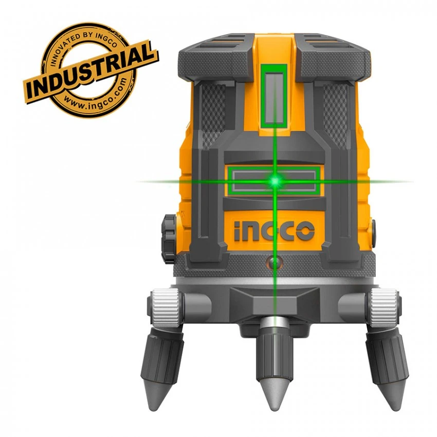 - Αυτορυθμιζόμενο γραμμικό αλφάδι Laser πράσινης δέσμης με 5 γραμμές λέιζερ και μία κουκίδα κέντρο. (οι δέσμες δημιουργούν 2 διασταυρούμενες γραμμές στους τοίχους και στην οροφή καλύπτοντας όλη την επιφάνεια του χώρου).